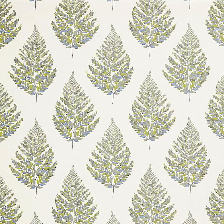 Frond Olive Woven Jacquard has a light background with a symmetrical leaf pattern