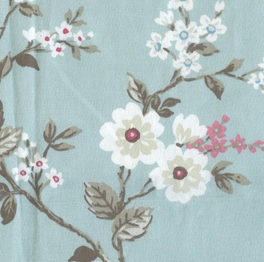 Lucy Duck Egg by Fryetts is a beautiful 100% cotton floral fabric.
